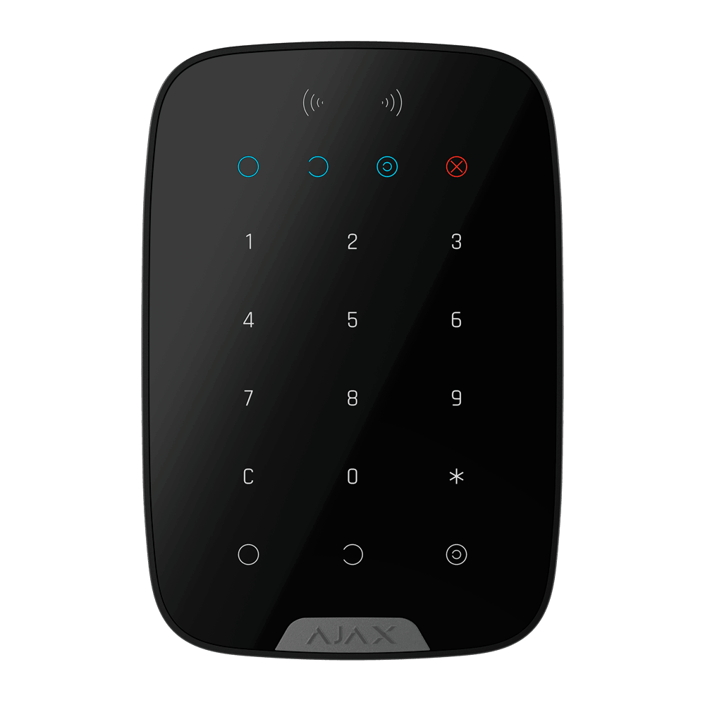 Teclado independiente Ajax con lector, bidireccional, inalámbrico 868 MHz Jeweller, certificado Grado 2. Funciones: armado, armado parcial, desarmado y emergencia. Alimentación con 4 pilas Panasonic AA (1.5 V).