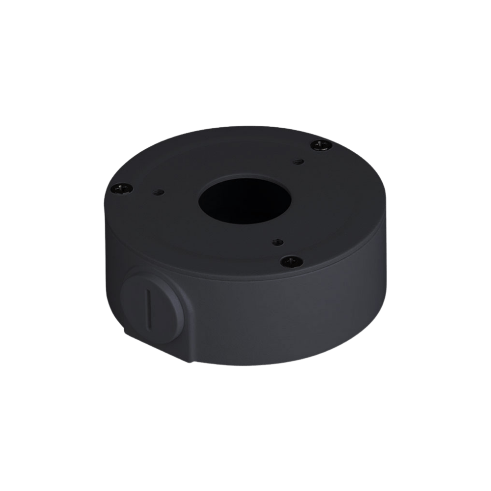 Base de instalación robusta y compacta, fabricada en aluminio y acero SECC de alta resistencia, diseñada para aplicaciones de videovigilancia o dispositivos de montaje con rosca estándar M20 (G1/2"). Con capacidad de carga de hasta 1 kg, esta base es ideal para entornos exigentes gracias a su tolerancia a temperaturas de -40°C a +60°C y humedad relativa de hasta el 90%. Su acabado en color negro y dimensiones de Ø90 x 35 mm la hacen discreta y funcional para instalaciones profesionales. Peso: 260 g.