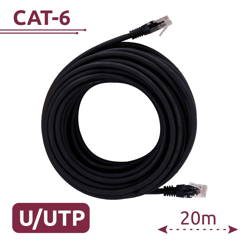 Cable de Red UTP Ethernet Cat 6 con Conectores RJ45 – 20 m – Color Negro