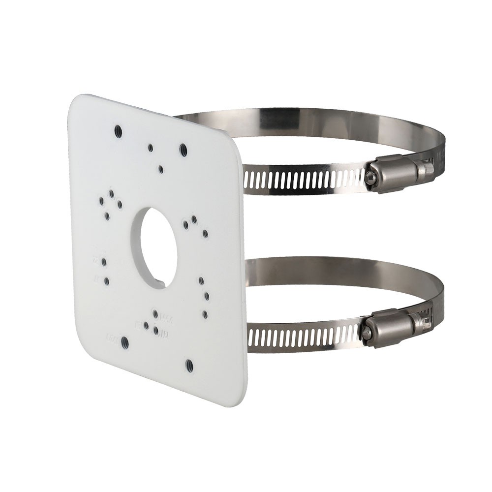 Diseñado para fijación segura de cámaras en mástiles, este soporte combina aleación de aluminio y acero inoxidable SUS304, ofreciendo una excelente durabilidad en entornos exteriores exigentes.