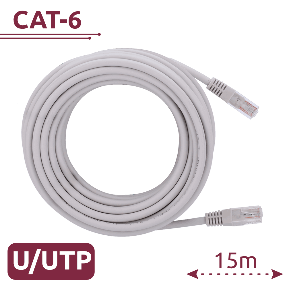 Câble Ethernet UTP blanc de catégorie 6 de 15 mètres avec connecteurs RJ45 robustes. Assure une connexion rapide et stable pour les réseaux domestiques et professionnels.