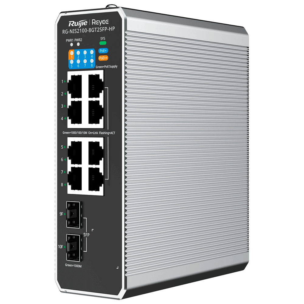 Switch Industrial PoE Gestionable Reyee – 8 Puertos Gigabit + 2 SFP